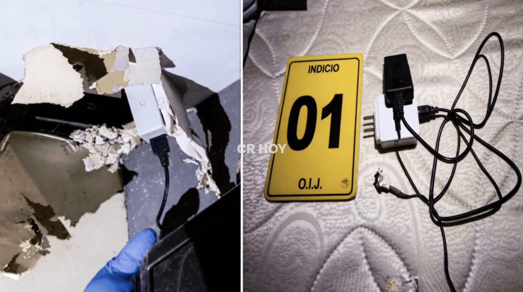 El Organismo de Investigación Judicial (OIJ) de Costa Rica ubicó cuatro dispositivos en distintos puntos de la casa, situada en el condominio Los Pericos, en Santa Ana, donde Junieysis residía junto a sus dos hijas.